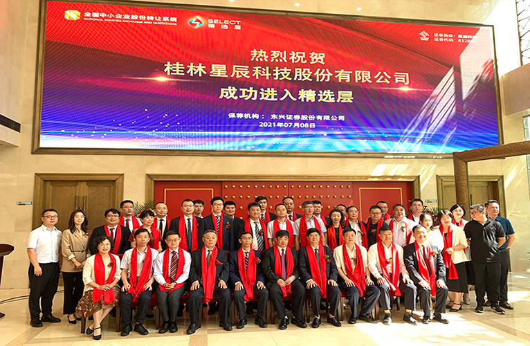 7月8日上午,桂林星辰科技股份有限公司(證券代碼:832885)成功進(jìn)入全國(guó)股轉(zhuǎn)系統(tǒng)精選層的掛牌敲鐘儀式在北京舉行,成為廣西首家新三板精選層掛牌企業(yè),一年后有望轉(zhuǎn)至科創(chuàng)板或創(chuàng)業(yè)板。