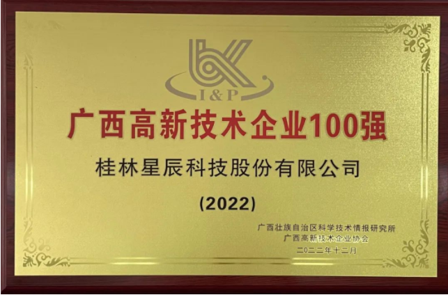 近日,廣西科技廳發(fā)布了2022年廣西高新技術(shù)企業(yè)百?gòu)?qiáng)榜單,桂林星辰科技股份有限公司成功入選“廣西高新技術(shù)企業(yè)100強(qiáng)”。
