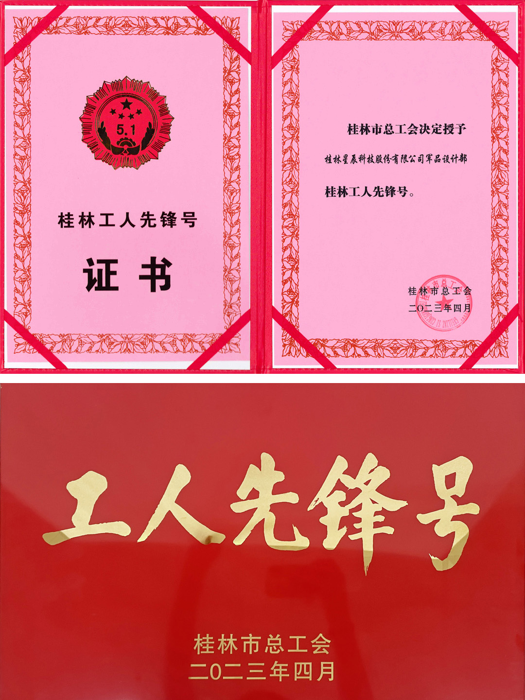 近日,廣西壯族自治區(qū)總工會對2023年廣西五一勞動獎和廣西工人先鋒號進(jìn)行表彰,桂林星辰科技股份有限公司董事會辦公室榜上有名,榮獲廣西工人先鋒號稱號。與此同時,公司軍品設(shè)計部也獲得由桂林市總工會頒發(fā)的桂林市工人先鋒號榮譽稱號。獲得此項殊榮,既是自治區(qū)總工會、桂林市總工會對星辰科技的認(rèn)可,也是對星辰員工愛崗敬業(yè)、拼搏奉獻(xiàn)、竭誠服務(wù)的激勵。