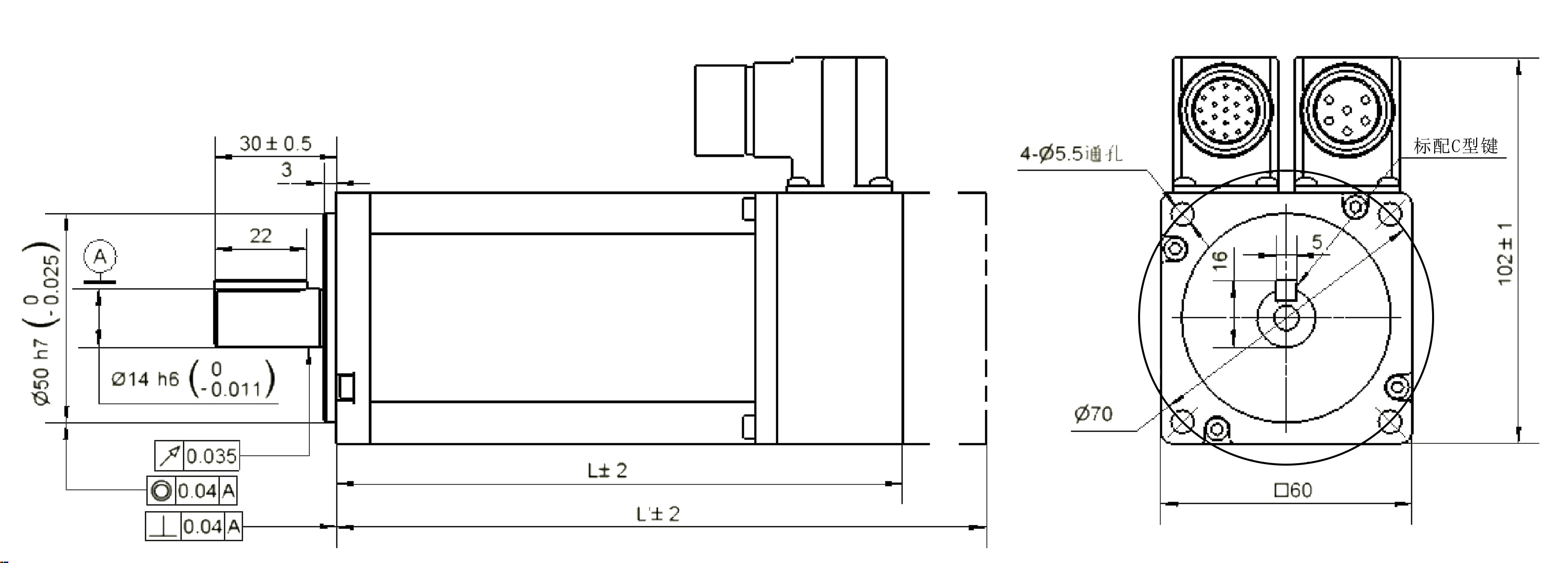 GM05交流永磁同步電機(jī)機(jī)械尺寸: