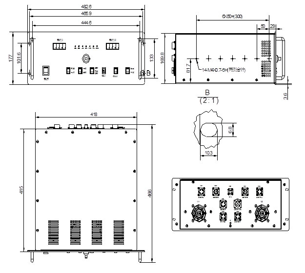 1. MAX4E5/10X 消隙伺服驅(qū)動(dòng)器外形尺寸示意圖(單位:mm):