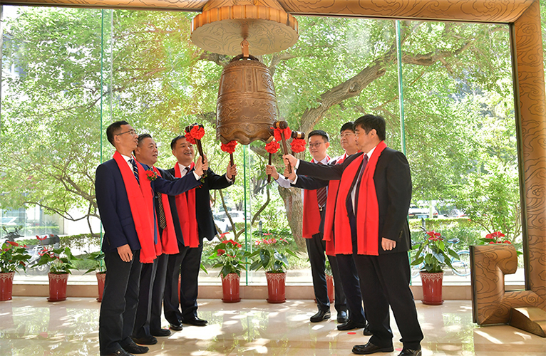▲廣西壯族自治區(qū)黨委軍民融合辦副主任楊京凱先生,桂林市委常委統(tǒng)戰(zhàn)部部長(zhǎng)王建毅先生,桂林市企業(yè)與企業(yè)家聯(lián)合會(huì)會(huì)長(zhǎng)劉康祿先生,桂林星辰科技股份有限公司董事長(zhǎng)、技術(shù)總監(jiān)呂虹先生,桂林星辰科技股份有限公司董事、總經(jīng)理馬鋒先生,東興證券股份有限公司副總經(jīng)理張軍先生共同敲響開市寶鐘。