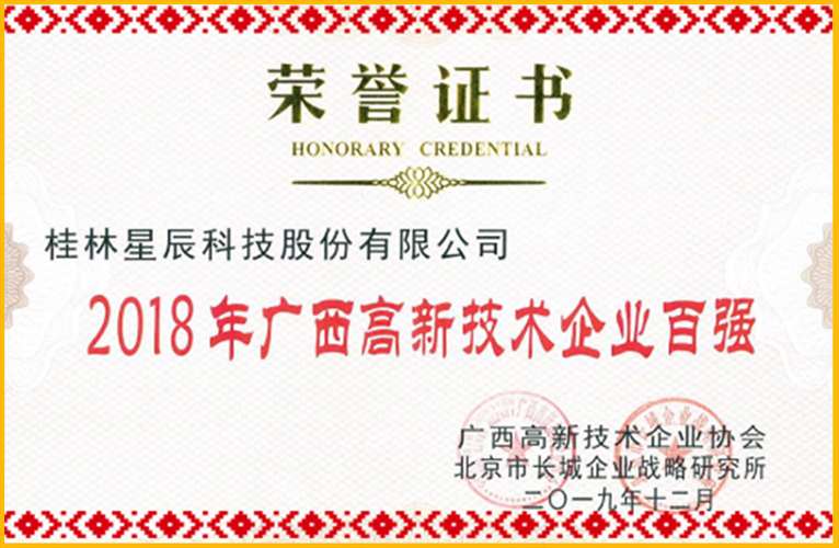 廣西高新技術(shù)企業(yè)協(xié)會(huì)發(fā)布了2018年廣西高新技術(shù)企業(yè)百?gòu)?qiáng)名單,桂林星辰科技股份有限公司榮幸入選該名單中。由廣西科技廳、財(cái)政廳及國(guó)家稅務(wù)總局廣西稅務(wù)局等部門(mén)領(lǐng)導(dǎo)為上榜企業(yè)代表授牌。此次星辰科技能夠入選廣西高新技術(shù)企業(yè)百?gòu)?qiáng)榜單,不僅是自治區(qū)各部門(mén)對(duì)星辰科技自主創(chuàng)新能力的認(rèn)可,也是給予本企業(yè)未來(lái)發(fā)展方向更高的指引。