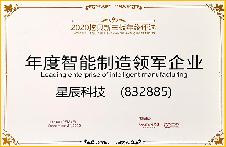 公司榮獲2020挖貝新三板年終評選“年度智能制造領(lǐng)軍企業(yè)”稱號