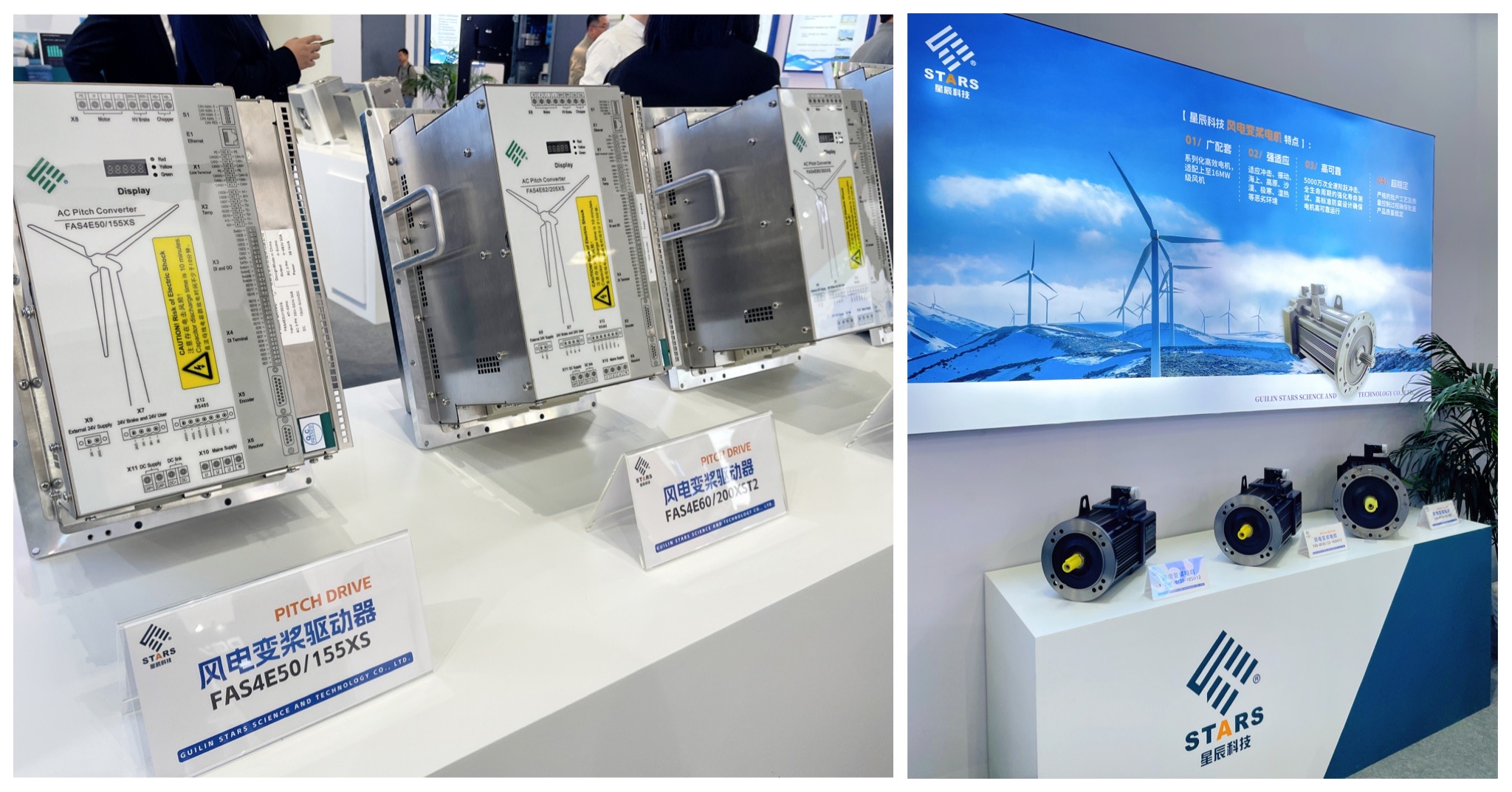 風(fēng)能展上,星辰科技展示了多款變槳驅(qū)動器、變槳電機及雙向DCDC儲能電源產(chǎn)品,系列產(chǎn)品可覆蓋陸上1.5MW~9MW和海上6MW~16MW風(fēng)機,具有高開放性、高集成、高精度、高安全、高可靠、配套廣、適應(yīng)強等特點。